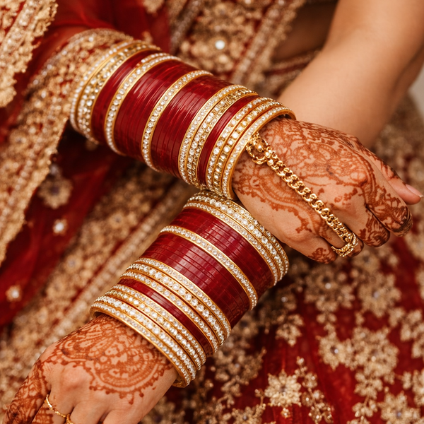 Diamond & Mirror Detail Luxury Small Maroon Chuda Set (Set of 38)